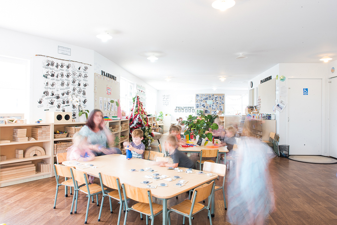 12:30pm - Free choice from a variety of learning experiences inside based on children’s interests and abilities / Group time activities / Transition to school session for 4 year olds for 30 minutes (Tui time). Younger children go for a sleep.
